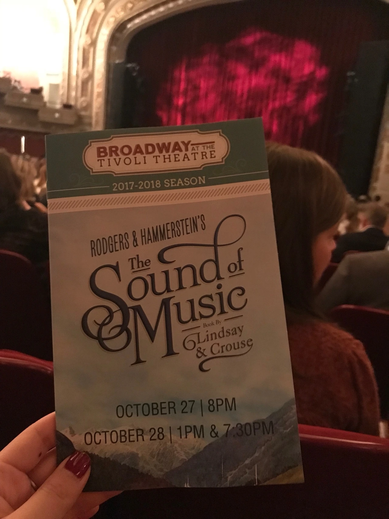 레이첼이 친구 D와 내가 오기로 하기 전부터 사운드 오브 뮤직이라는 뮤지컬을 보기로 했다고 나에게도 같이 보자고 했다. 테네시에 도착한 주말에 함께 공연장으로 갔다.