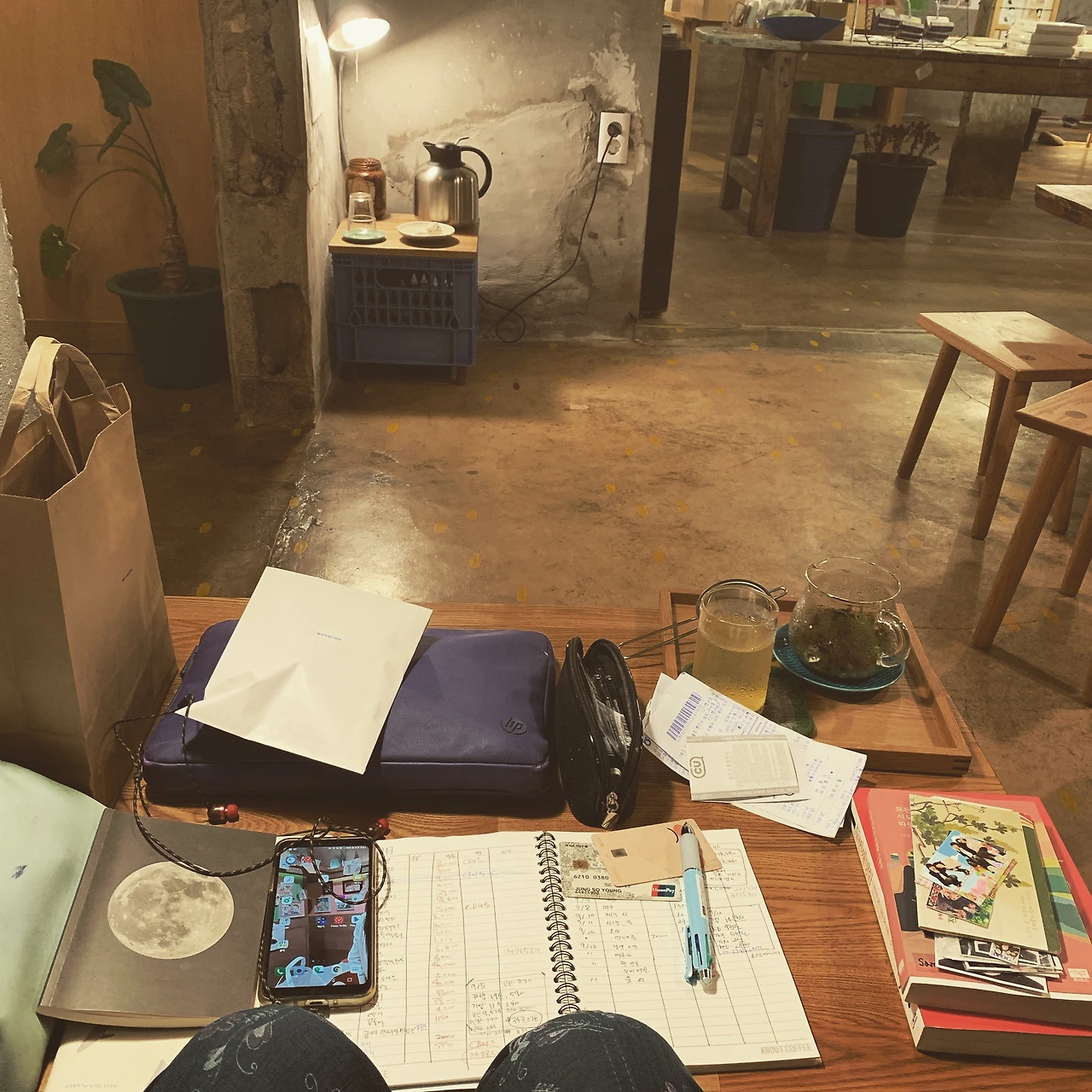 버거 먹고 담소 나누다 경주는 책 읽고 나는 일기 쓰고