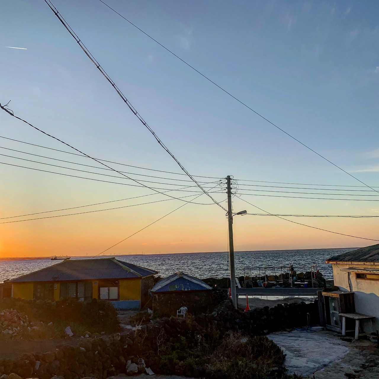 우도에서 지는 해보는 게 매일매일의 낙이랄까?