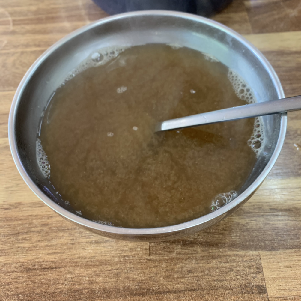 멸치 육수에 된장 거른 된장차를 마셨다.