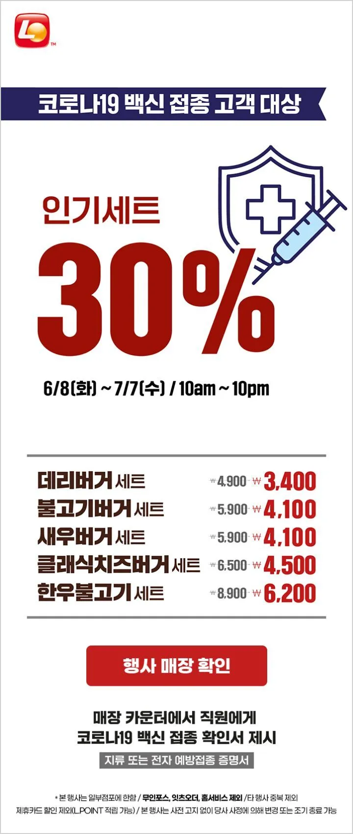 얼른 백신 맞고 롯데리아 햄버거 할인받을 거다~