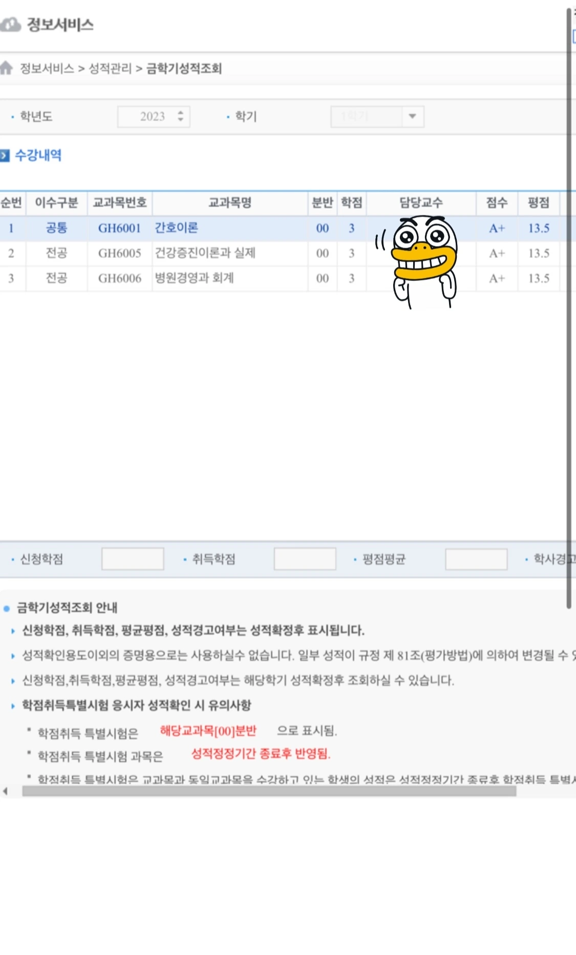 대학원 성적이 나왔다. 캬캬캬. 인터넷에 검색해 봤는데 대학원은 점수를 후하게 준다더라? 그래도 이왕이면 좋은 게 좋지.