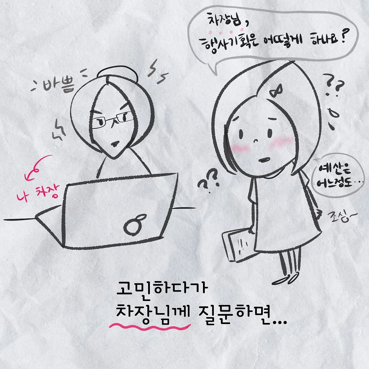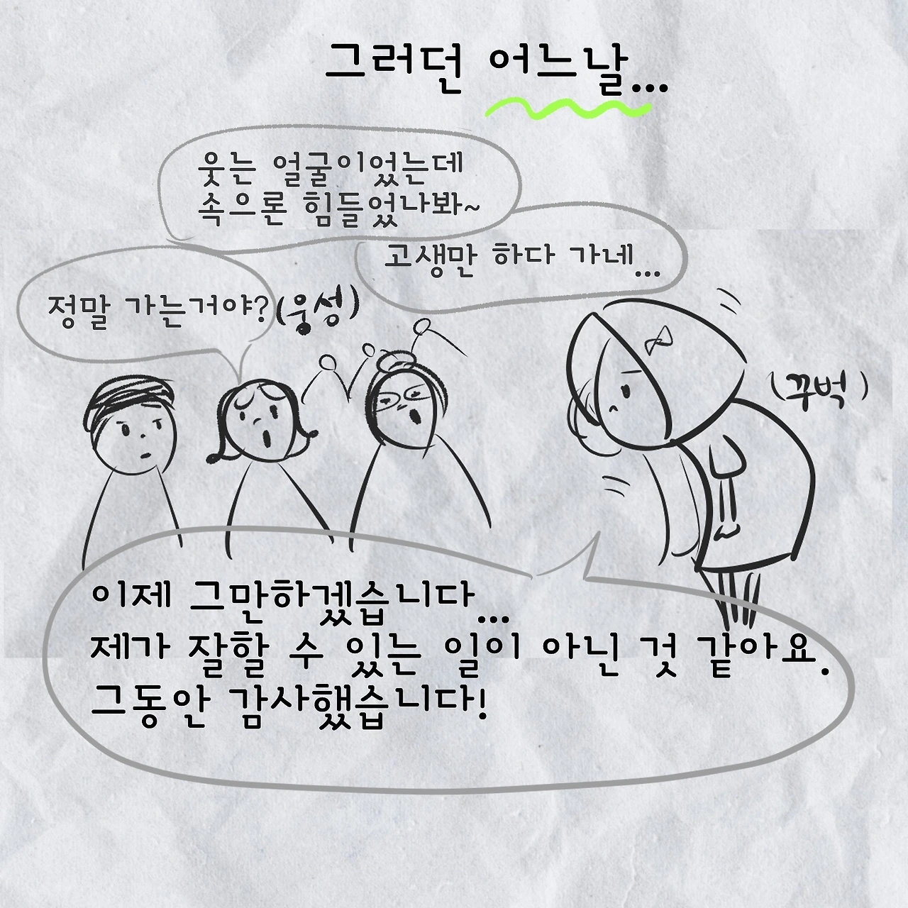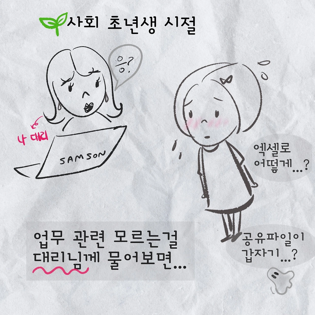 문득 옛 직장에서의 추억이 떠올라 일상툰으로 만들어봤어요. 당시 힘들었던 기억도 이제는 웃으며 돌아볼 수 있게 되었네요.^^;