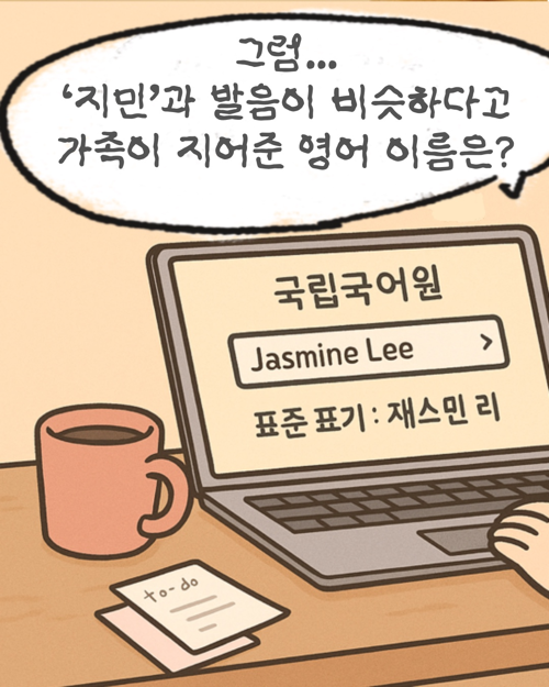 국어 국립원 사이트에 들어가 Jasmine Lee를 입력해 보니, 표준 표기가 '재스민 리'라고 했다.