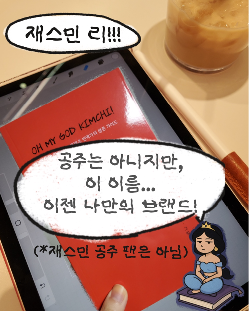 그렇게 나는 Jasmine이란 영어 이름을 다시 살리기로 한다. 하지만 프리랜서로 이미 한국어 이름으로 오랜 기간 활동했기에, 그다지 적극적으로 영어 이름을 내세우지는 못하고 있었다. 그러다가 직접 에세이를 독립출판으로 만들면서 다시 이름에 대한 이슈가 수면 위로 떠올랐다. 내 첫 공식 저서에는 확실히 Jasmine이란 이름을 본격적으로 사용하고 알리자!