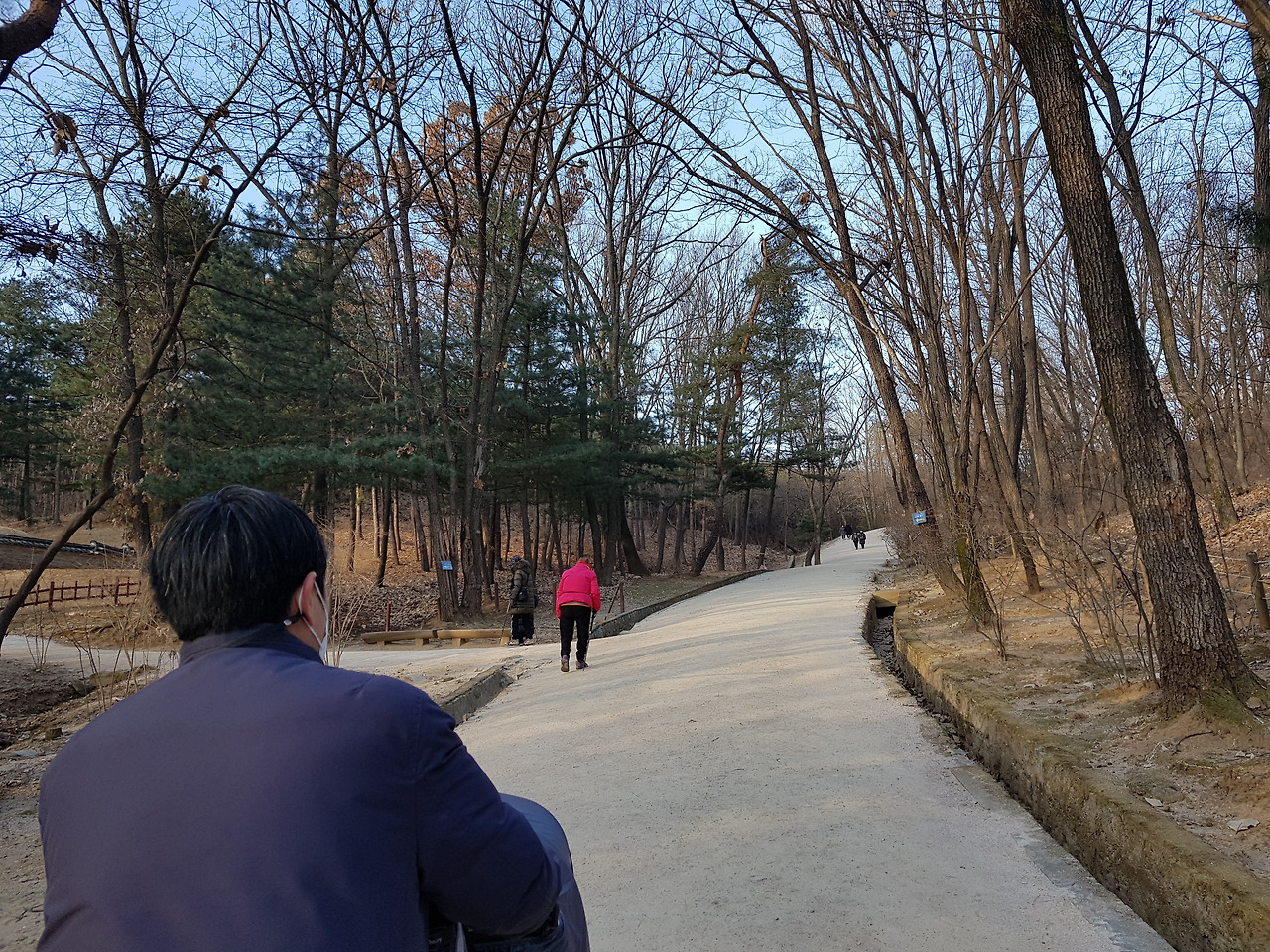 오르막길은 쉬지 않고 나왔다. 유모차를 계속 민 남편에게 이제 내가 밀겠다고 했지만 남편은 한사코 괜찮다고 했다. 분명히 힘들어 보였는데 말이다. 나도 운동 좀 하려고 한다는 말을 들은 남편은 그제야 나에게 유모차 손잡이를 양보했다. 잘 다져져 있었지만 흙길이라 유모차를 밀고 올라가는 게 쉽지 않았다.