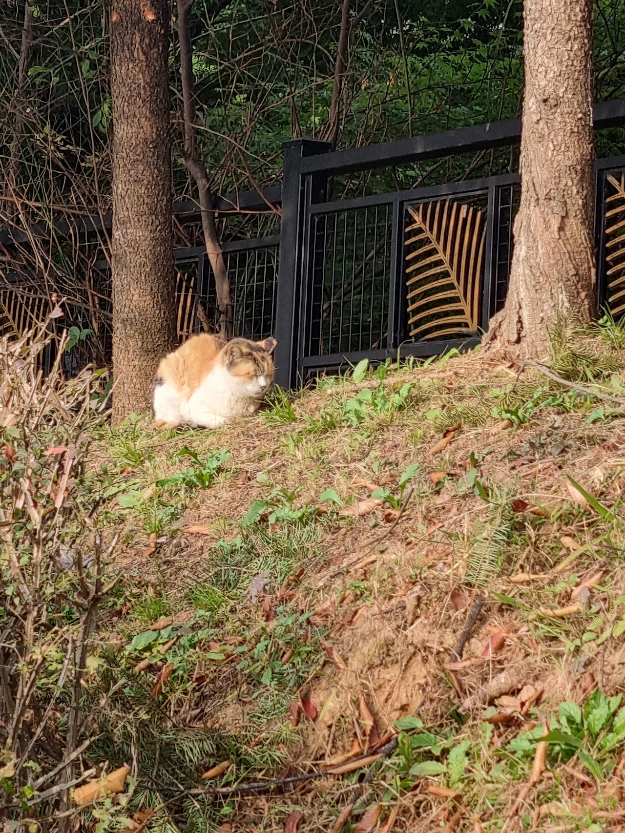 산책을 하다 보면 햇볕을 쬐고 있는 고양이도 볼 수 있다. 이러니 산책을 안 할 수가 있나.
