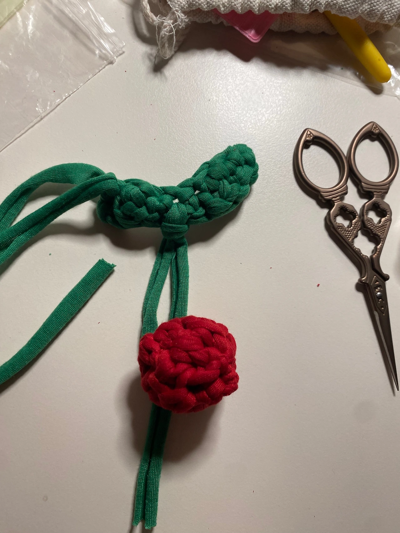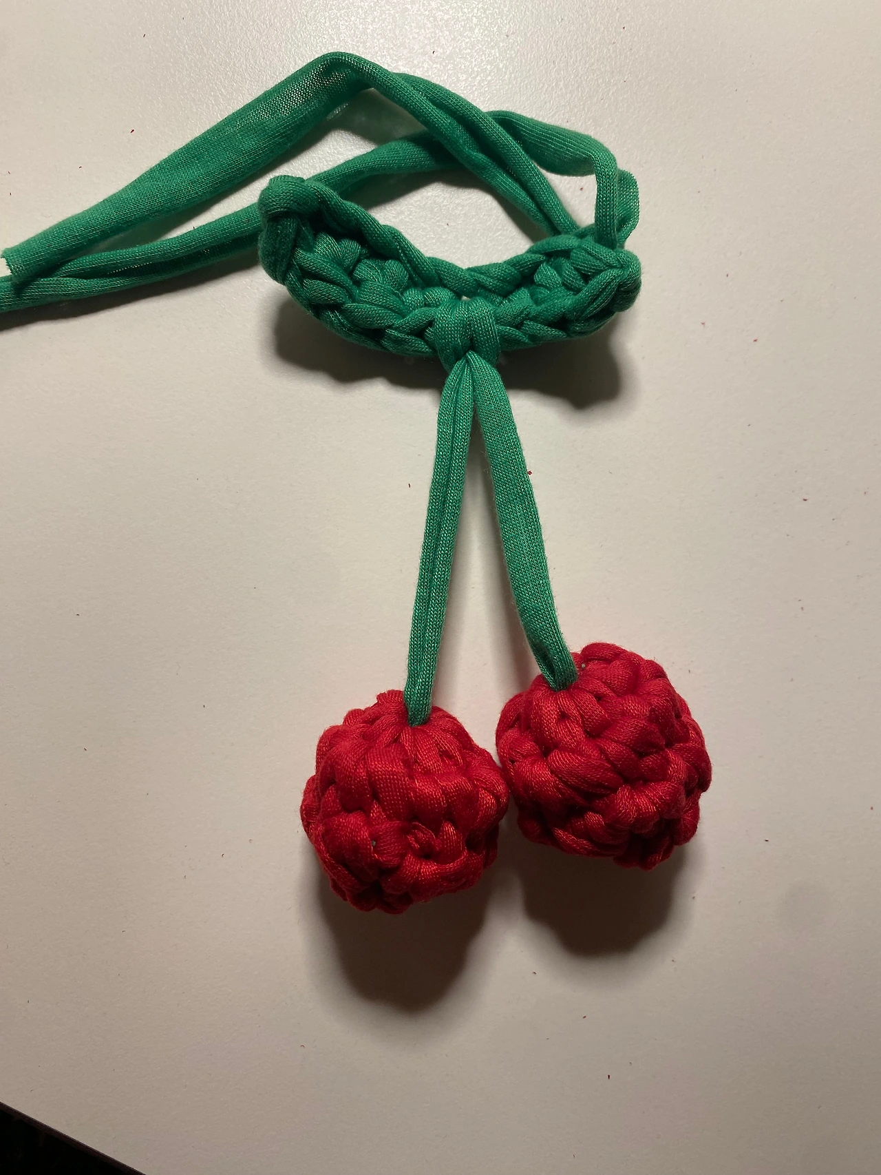 이렇게 체리알이 하나 완성됩니다! 나머지 하나도 영상 따라 동일한 방법으로 떠주면 됩니다! 체리알 실밥 마무리 시, 수예용 가위로 실을 조금 넣게 되실텐데, 이때 손 찔리는거 꼭 조심해주세요! (찔리면 많이 아픕니다)