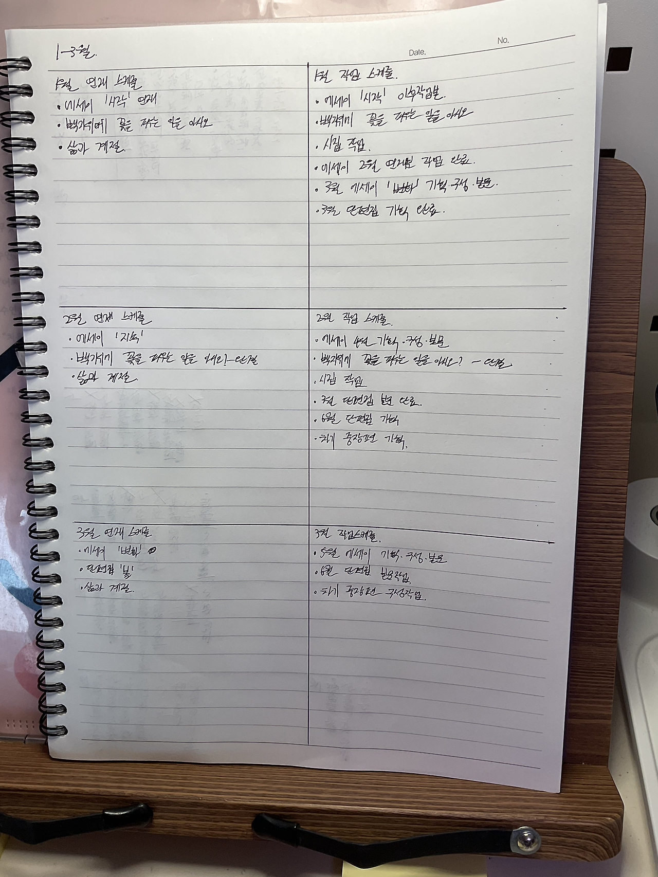 나는 1년 치의 계획을 세우기에는 유동성이 너무 크다고 생각했다. 그래서 일단 3개월치만 정리해 보았다.