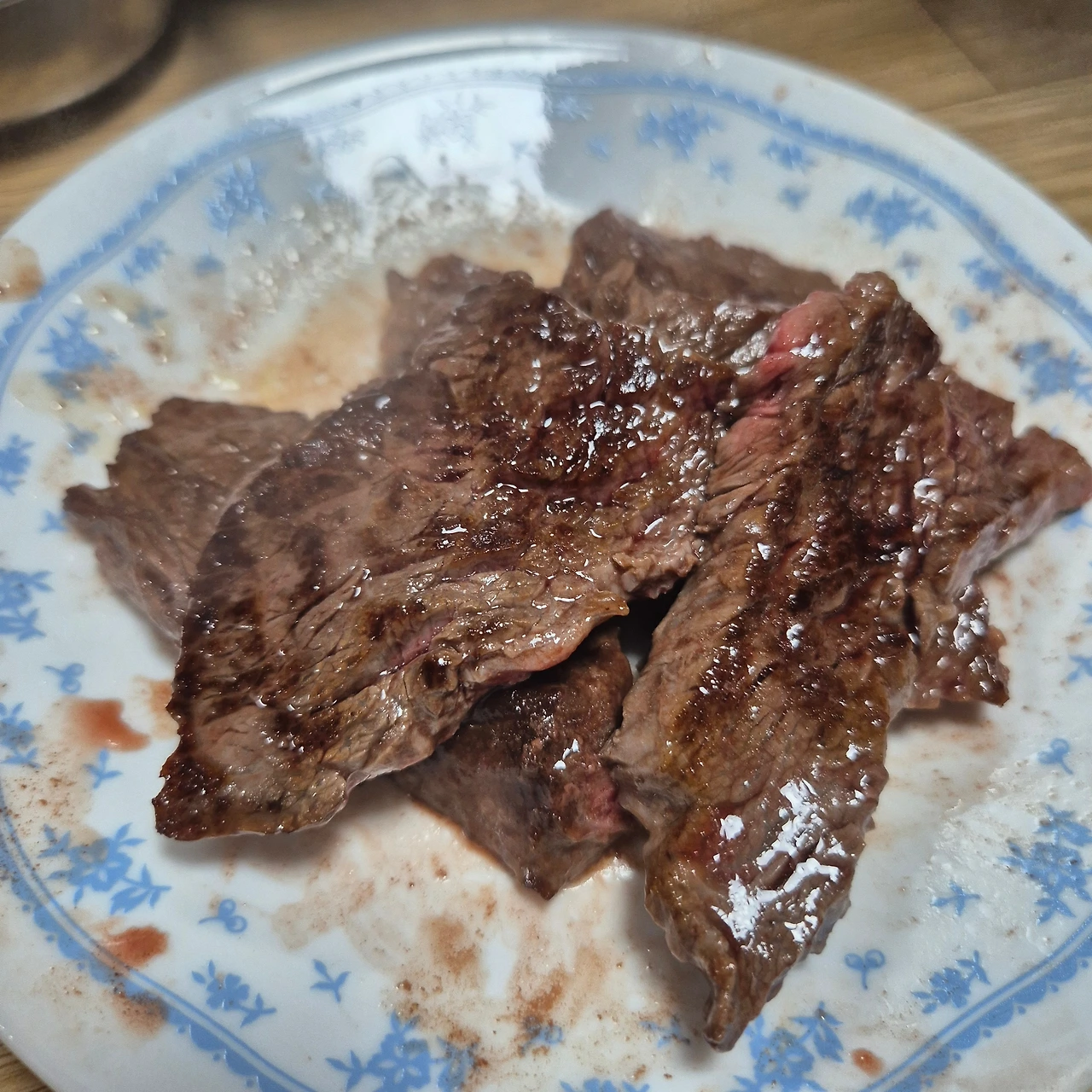 고모부가 소고기를 바리바리 사오셨다. 불판 옆에 나란히 앉아 모이를 기다리는 아기 새가 된 기분으로 치맛살을 넙죽 받아먹었다.