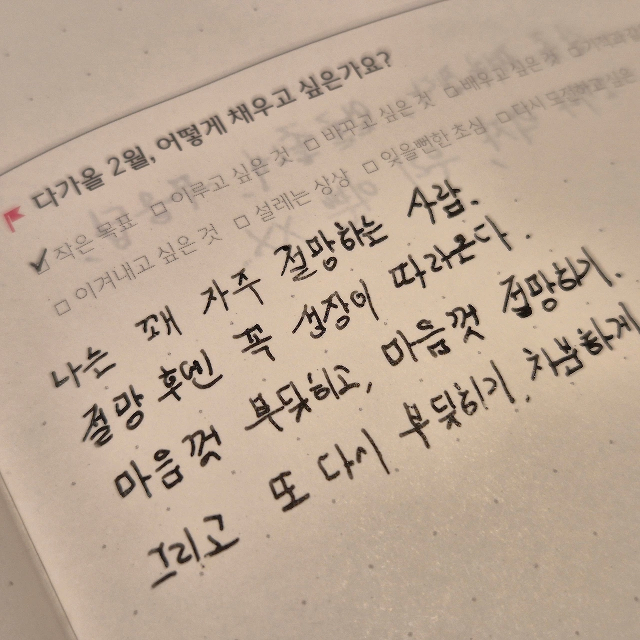 우중충한 기분으로 연습실을 나서며 문득, 나는 참 많이도 절망하는구나 하고 깨달았다.