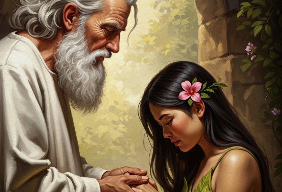 신은 하와에게도 다정하지만 단호한 목소리로 말했다. "너는 모든 인류의 어머니가 될 것이니, 아담과의 약속을 신성하게 여겨야 한다." 하와는 순종적인 마음으로 고개를 숙였다. 그녀의 뺨은 부끄러움으로 붉게 물들어 있었다.