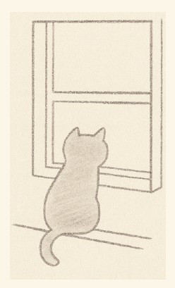 책 뒤표지를 보면 고양이가 창을 응시합니다.