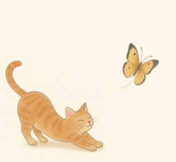 잠에서 깬 고양이는 다시 나비(꿈)를 쫒습니다.