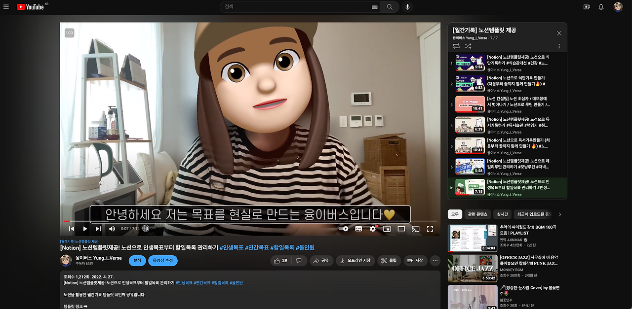 #1 유튜브 채널에 노션템플릿 하나 올려 두었을 뿐인데