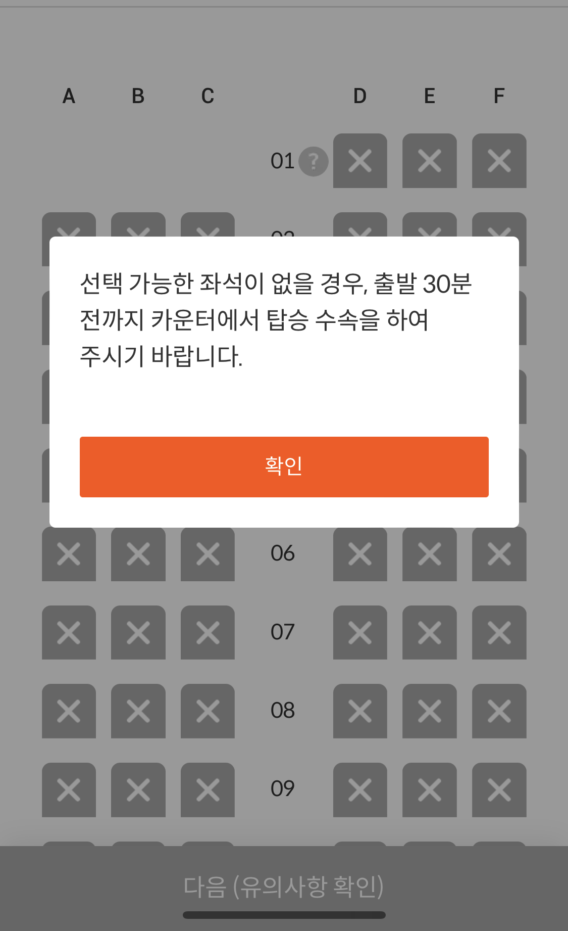 비행기 체크인은 보통 24시간 전에 문자 알람이 온다. 원래 같으면 재빠르게 체크인하여 창가 좌석을 선택했겠지만 이번엔 자전거를 타고 이동하다 보니 체크인 시간을 놓쳤다. 당일 세 시간 전에 비행기 셀프 체크인을 하려고 확인하니 자리가 하나도 없다고 뜬다. 뚜둔.. 이것이 바로 오버부킹인가!