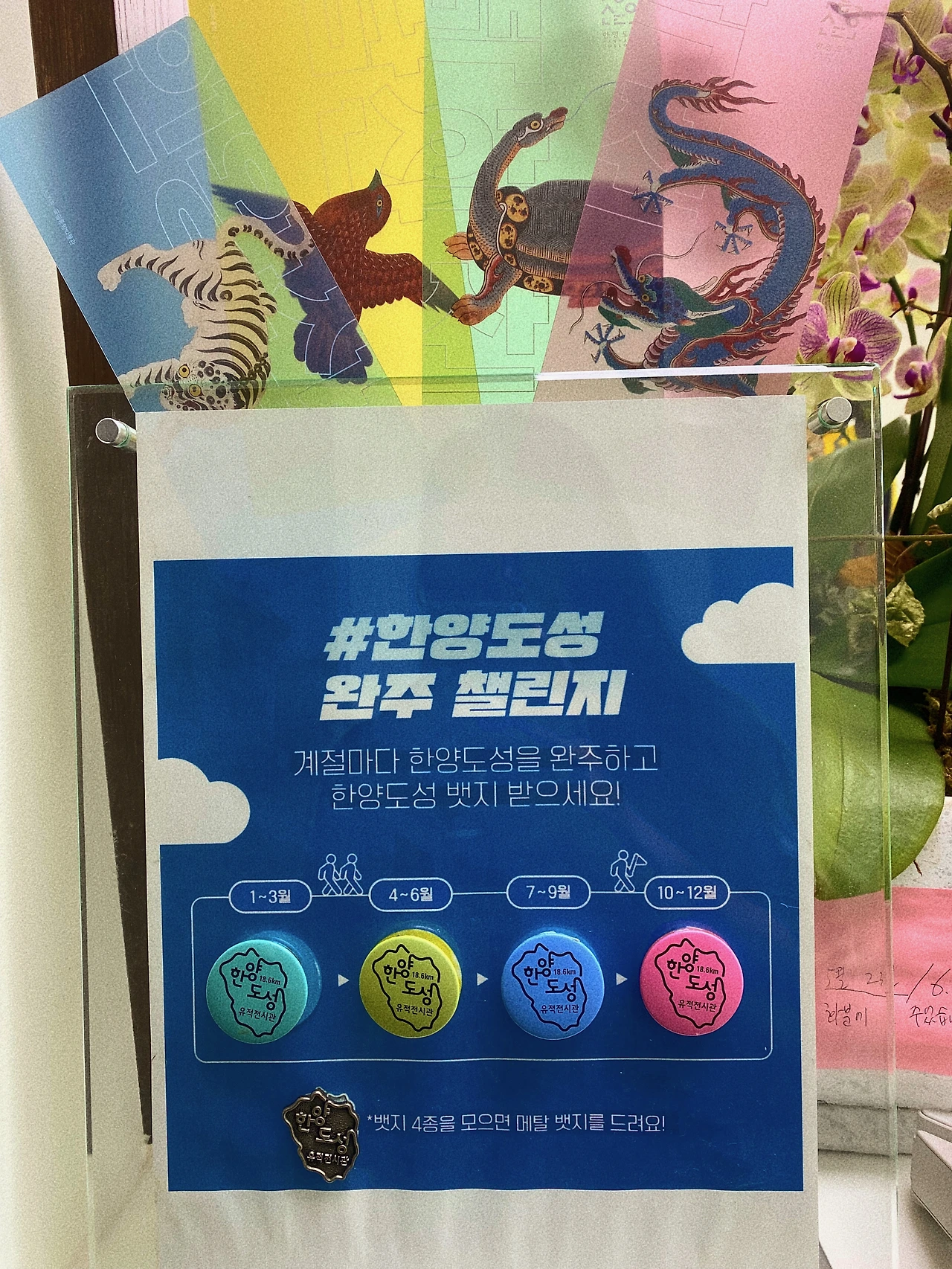성취감을 글로 배울 때와는 다르게 직접 경험으로 느끼니 바로 마음에 와닿더라고요. 한양도성길은 저의 성취감을 자극하듯이 분기마다 색상이 다른 배지를 지급하고 계절마다 모든 색상의 배지를 모으면 메탈 배지를 받을 수 있습니다.