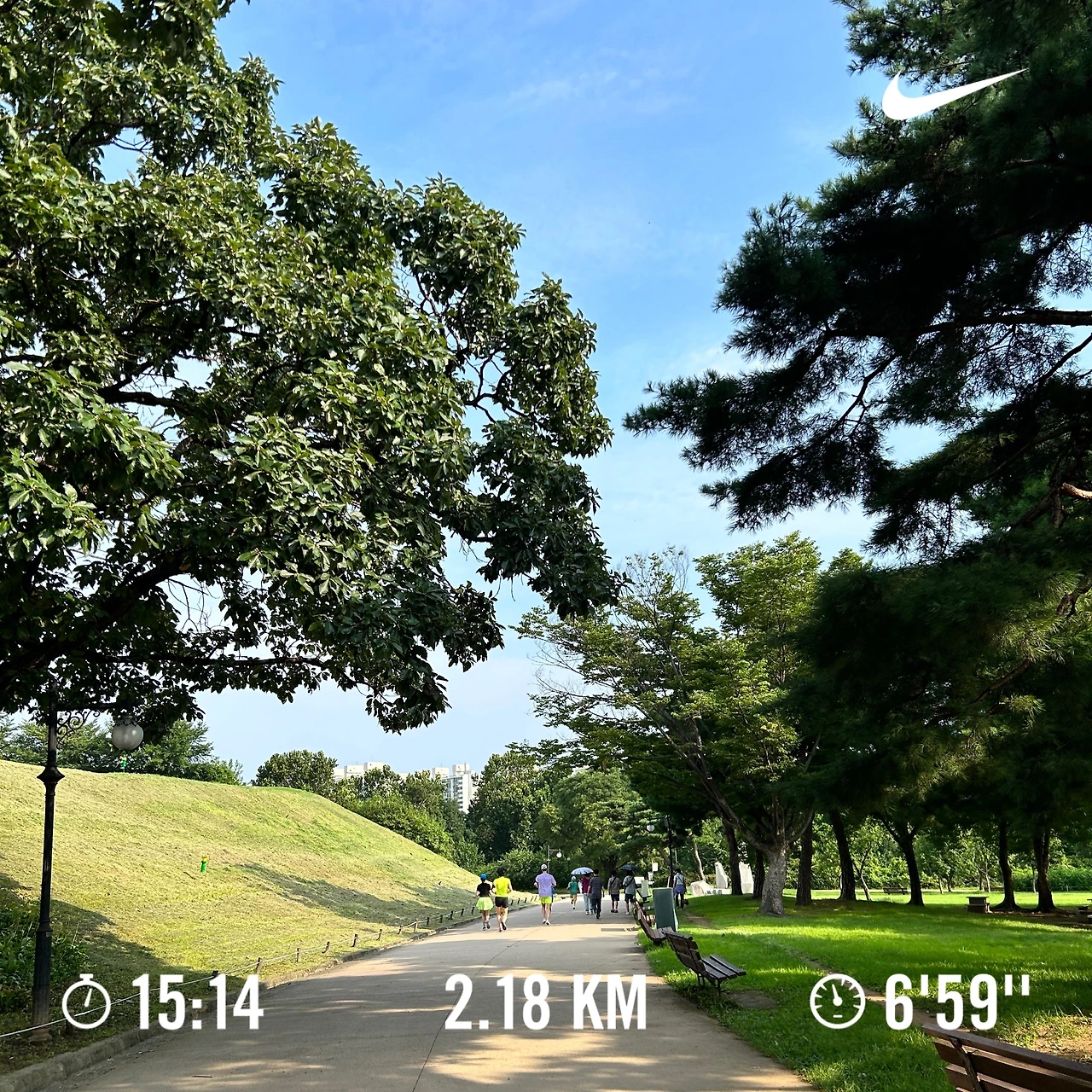 광복절. 내 나라가 주는 안정감. 독립을 위해 헌신했던 모든 분들에 대한 감사함. 휴일이 주는 달콤함. 공휴일이라 그런지 공원을 찾는 분들이 많다. 그중 다섯 명의 가족 러너를 발견했다. 나도 훗날 가정을 이룬다면 저런 그림을 그려보고 싶다는 상상을 해 보았다. 어른들을 따라 헛둘헛둘 땀을 뻘뻘 흘리면 뛰어내는 아이들이 귀엽다.