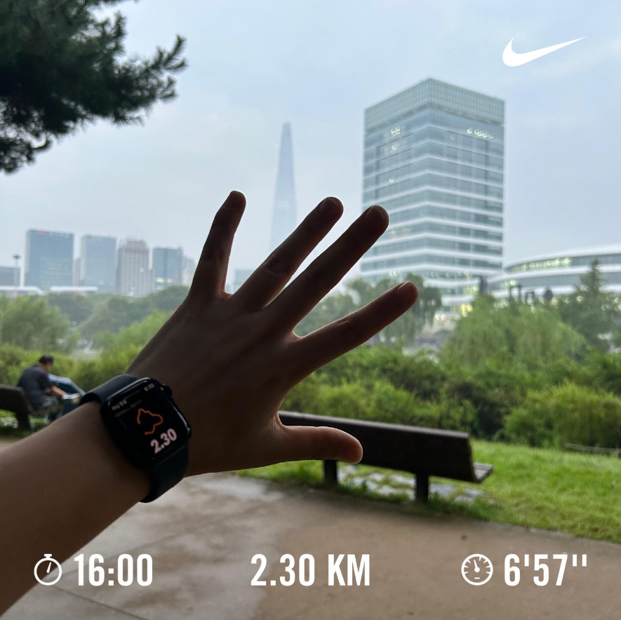 조금만 더 잘까, 생각하다가 어제 잠들기 전 본 문구가 떠올랐다. 수면이 부족하면 아프고 살찌고 멍하고 늙는다. 자극적이지만 인상적인 문구가 머리에 쏙 떠오르면서 일단 나가보자. 주초에는 아침 일찍 예정되어 있는 교육으로 일단 러닝을 멈췄다. 지금 생각해보면 멈추지 말고 뛸 걸 그랬다. 그래도 오늘 나왔으니 잘했다. 조금 뛰다보니 기분이 좋아지기 시작했다. 입가에 미소를 지어보았다. 귀에 흐르는 루시의 노래도 좋고 조금씩 내리는 비도 시원하고 좋았다. 일단 나온 것에 칭찬해주고 싶은 날 ☔️