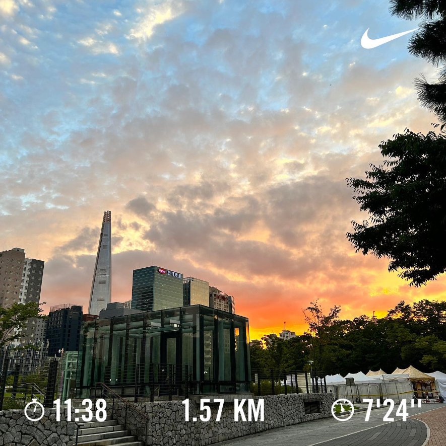 익숙한 동네로 돌아왔다. 길을 잃지 않을 자신이 있는 곳. 안경은 집에 고이 두고 이어폰을 꽂고 좋아하는 음악을 들으며 러닝길에 나섰다. 비가 오고나서 한층 더 선선한 날씨가 나를 반긴다.