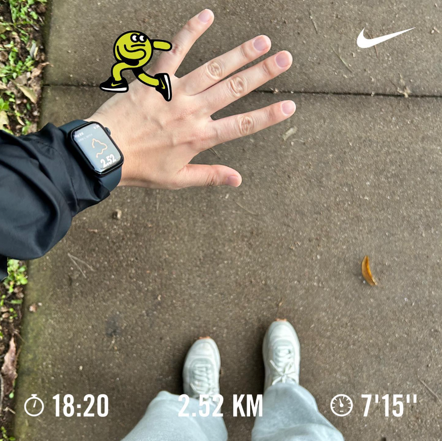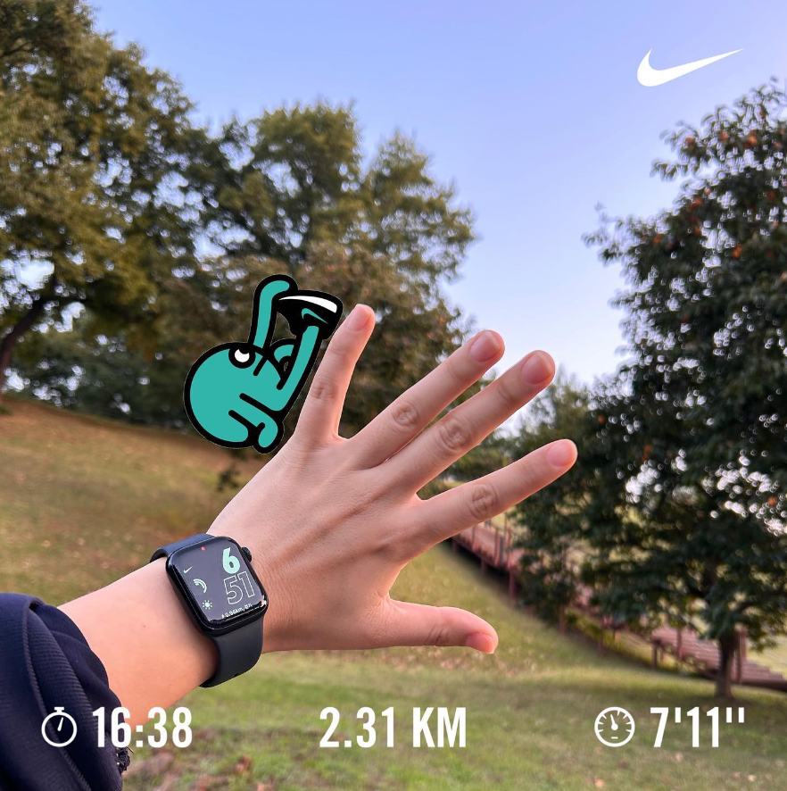 오늘은 15분 알람을 맞추고 뛰어봤다. 시계를 집에 두고 와서 휴대폰으로 나이키러닝앱을 실행한 날.