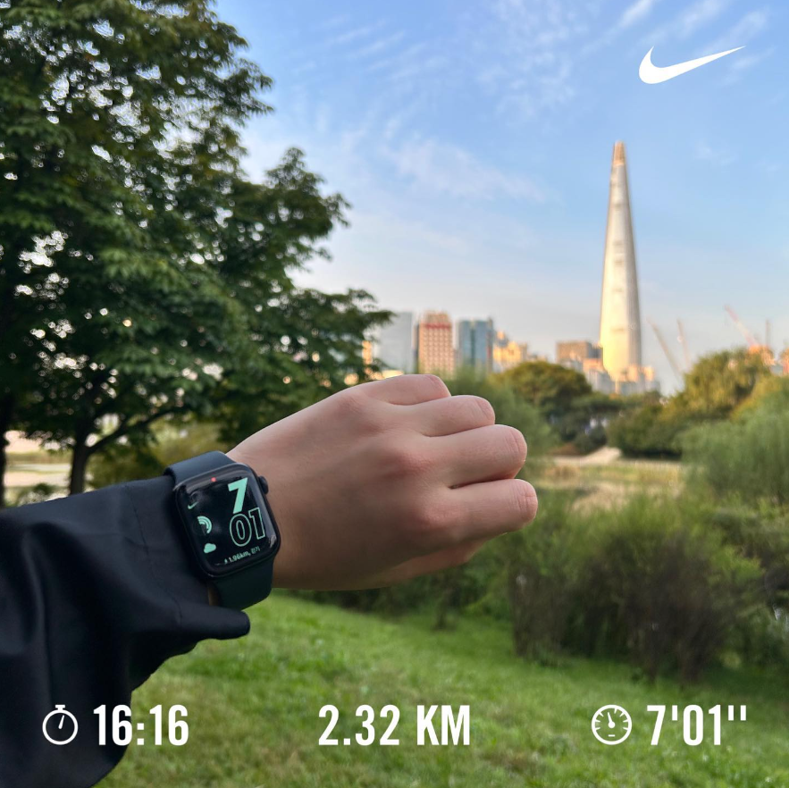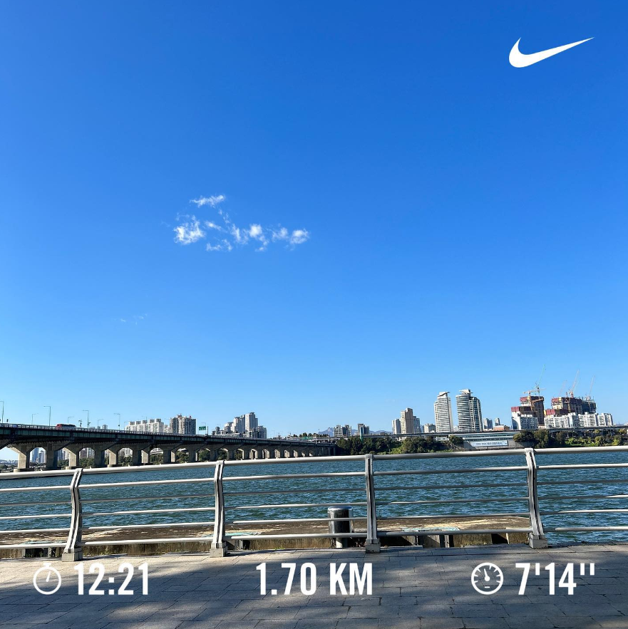 어제 퇴근길에 대리님이 아침에 5km를 처음 뛰어보고 출근했다고 말해줬다. 연휴다 바쁘다 핑계대고 뛰지 않은 나를 반성하며 바로 아침에 튀어나왔다.