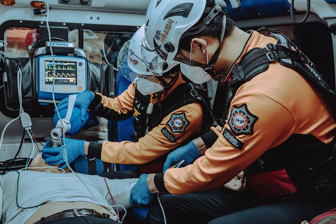 "알겠습니다. 응급처치 담당하는 소방관 바로 연결해 드릴 테니깐 전화 끊지 마세요."