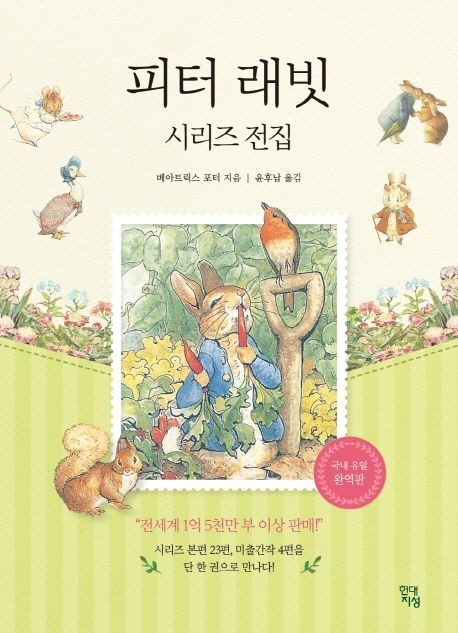 이 책에는 베아트릭스 포터가 생전에 출판했던 23편의 ‘피터 래빗 시리즈’와 함께 미출간작 4편이 모두 담겨 있다. 의인화된 동물들이 펼치는 스토리는 단순하지만, 어른을 위한 동화라고 해도 좋을 정도로 현실을 많이 반영하고 있다. 등장인물들은 동물의 모습을 하고 있지만, 우리 주변 어디에선가 본 사람들의 모습과 묘하게 오버랩된다. 생쥐 티틀 마우스 아줌마는 결벽증 있고, 가난한 글로스터의 재봉사는 성실하지만 찢어지게 가난하다. 또 오리 제미마는 어리석고, 여우 신사는 음흉하다. 올빼미 브라운 할아버지는 불로 소득으로 살아가고, 약삭빠른 고양이 타비타 드위칫은 다른 가게가 없어지자 슬쩍 물건 값을 올린다. 그래서 아이뿐만 아니라 어른도 재미있게 읽을 수 있다.