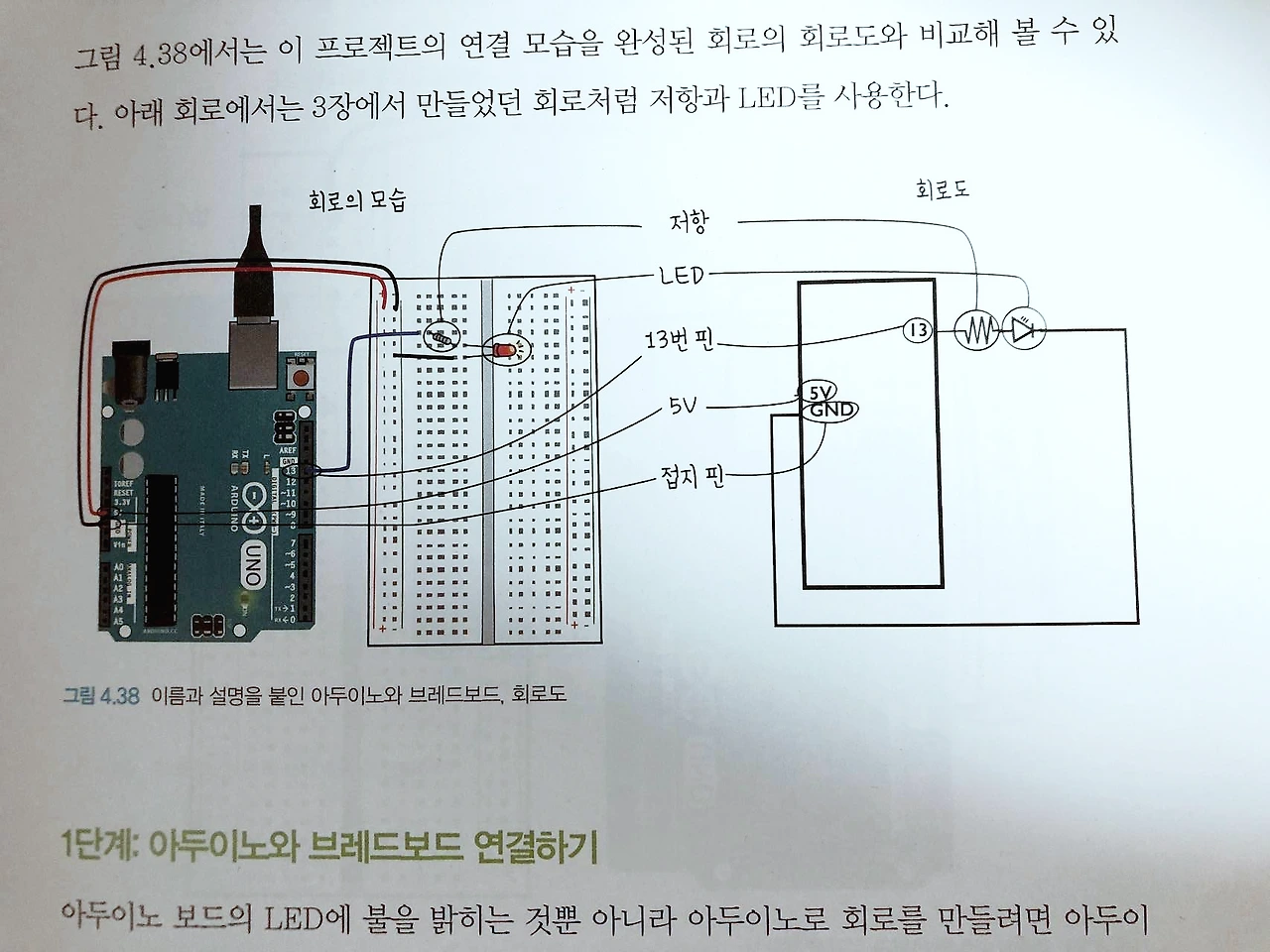 회로도 대로 연결하면 불은 들어온다. 하지만 우리가 하고 싶었던 것은 단순히 스위치 눌렀다고 불 들어오는 것이 아니잖는가?