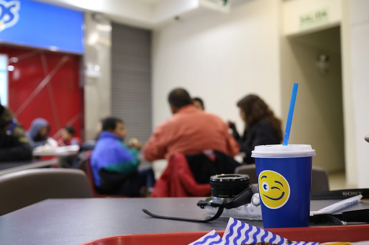 커다란 홀에 빼곡히 놓인 테이블에 앉아 햄버거를 기다리는 동안 주변에 앉아있는 사람들은 대부분이 하루의 일과를 마치고 온 학생들, 직장인들, 가족들이었다. 이곳에서 살아가는 그들의 하루가 어땠을지 쉽게 속단할 순 없겠지만, 적어도 저녁을 먹기 위해 모여 앉아 대화를 나누고 있는 모습은 그냥 그대로 표현할 수 없이 평범해 보인다.