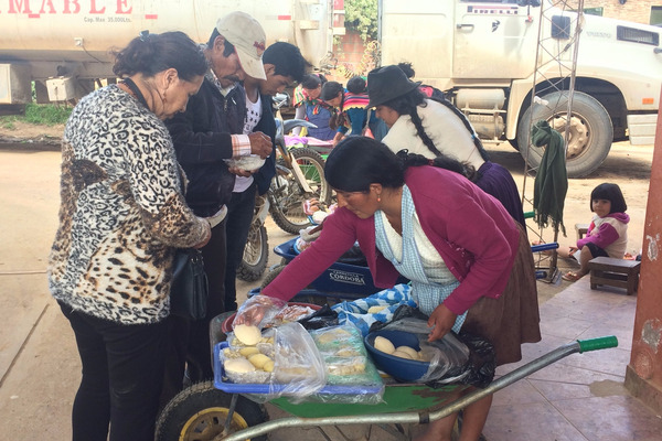 다음 날 우리는 터미널도 아닌 마을 외곽의 한 주유소에서 만났다. 이곳은 수크레로 가는 버스가 지나는 길이므로, 여기서 기다리다가 오는 버스를 타면 된다고 했다. 그러나 버스가 몇 시에 오는지, 몇 대나 있는지는 아무도 몰랐다. 남미 특유의 여유 있는 표정으로 'no te preocupes(노 떼 쁘레오쿠뻬스, 걱정하지 마)'를 외치는 아이들. 우리는 기약없는 버스를 기다리며 흙먼지 날리는 주유소 한쪽 구석 그늘에 앉아 수다를 떨다가, 고데기로 머리를 말다가, 주유소를 지나는 상인들에게 점심을 사 먹기도 했다.