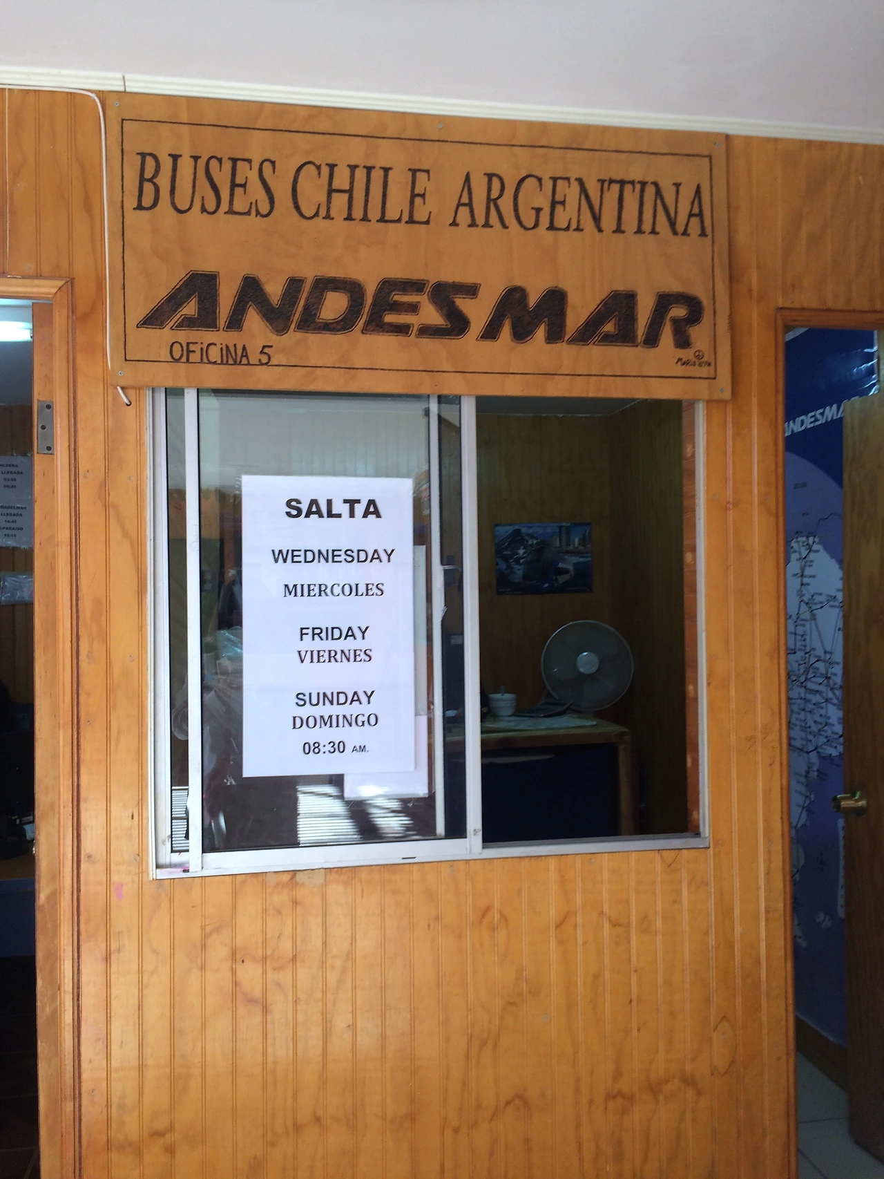 볼리비아에서 온 우리를 내려줬던 칠레 아타카마의 버스 정류장에는 아르헨티나 북쪽의 후후이 주(州)로 넘어가는 버스가 2~3대 정도 있었다. 조금씩 가격이 다르고 출발하는 날짜와 시간도 달랐는데 그중에서도 가장 괜찮다는 안데스마르 버스를 예약했다. 어디서나 흥정이 가능한 남미답게도 맨 처음 물어볼 땐 2만 페소, 4명이 탈거라니까 18,000페소를 부르더니, 막상 예약을 할 땐 아무것도 묻지도 않았는데 17,500페소라기에 흥정도 없이 콜을 외쳤다.