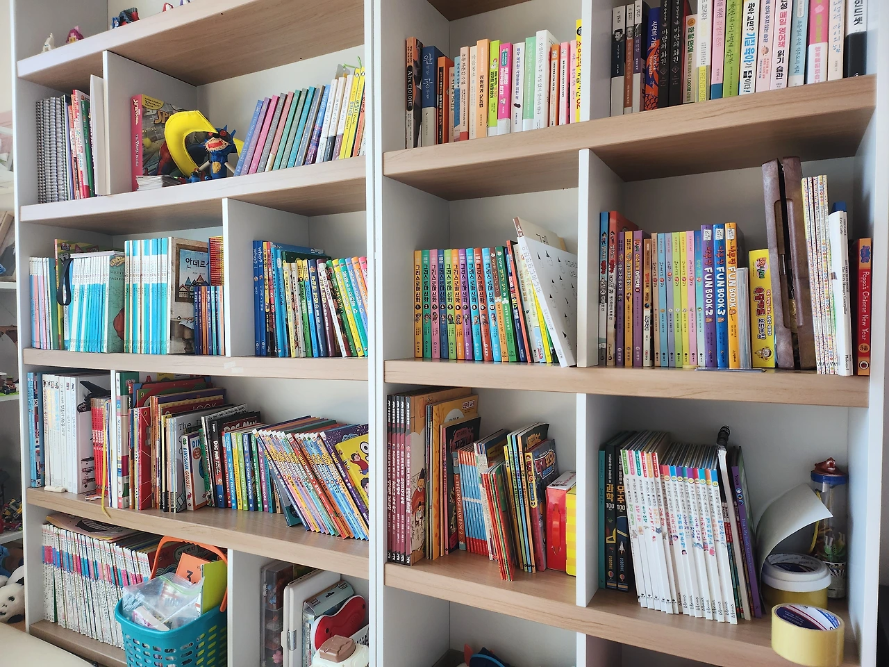 엄마 책은 점점 없어지고 아들 책은 점점 늘어가고.