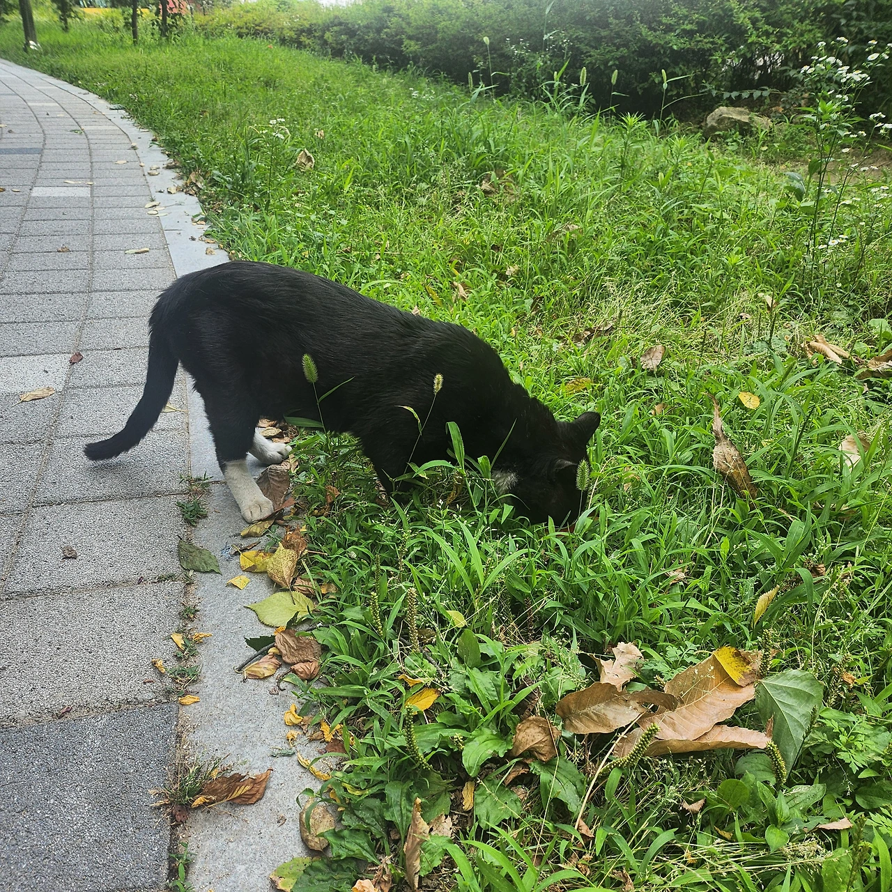 얼마 전 아파트 옆길에 난 산책로에 검은 고양이 한마리가 출연했다. 초등학교와 유치원을 끼고 있는 골목이라 워낙 아이들이 많이 돌아다니는 길인지라 그 고양이는 한순간에 인기스타가 되었다. 지나가는 아이들이 모두 너도나도 자리 잡고 앉아 고양이 사진을 찍고 쓰다듬고 있었다. 보통 길고양이라면 으슥한 곳에 있거나 사람의 손길을 피해 도망갈 법도 한데 이 고양이는 가만히 누워 사람 손길을 타고 있었다.