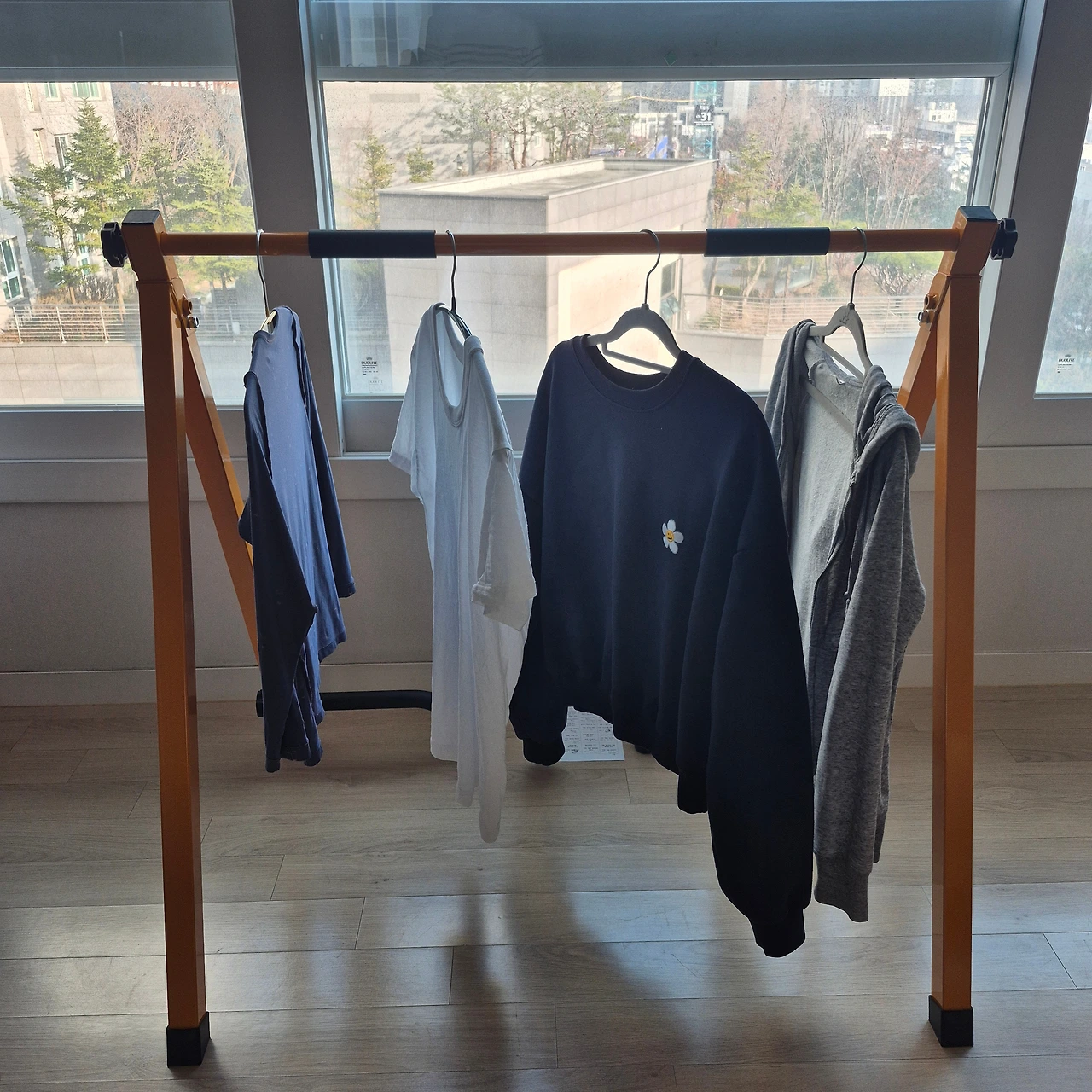 너는 이제부터 빨래가 많은 날에는 빨래건조대가 되고, 손님이 오는 날에는 손님용 옷걸이가 되고, 집에서 홈발레를 할 때는 발레바가 되는 거야. 알겠지? 그리하여 남편이 베란다에 모셔 둔 정체 모를 이 물건은 우리 집 거실 한편을 차지했고 때로는 저녁이면 빨래건조대로 아침이면 홈트레이닝 파트너로 활용 중이다. 남편도 내심 뿌듯한 얼굴.