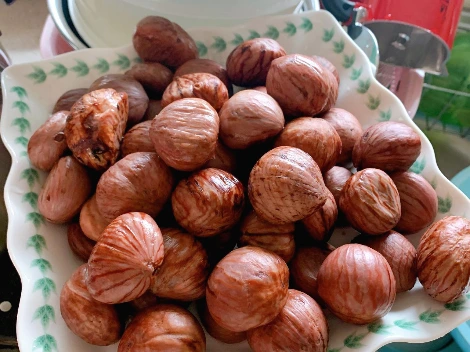 8. 삶은 밤은 다시 찬물로 조심스럽게 세척한다.
