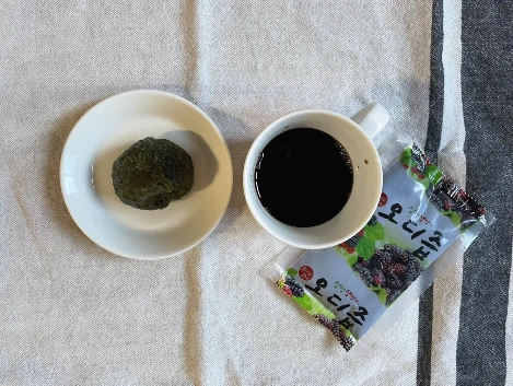 새콤 달콤한 오디즙을 몇 팩 넣어주셔서, 팥 앙금 들어간 떡과 함께 아침으로 며칠 동안 먹었다. 오디즙은 혈당을 낮추고 뼈의 노화를 방지하는 등의 효과가 있다고 한다. 즙 종류를 장기 복용하는 것이 좋지 않다고 해서 따로 챙겨 먹지 않는데 이렇게 가끔 몇 팩 씩 먹어주면 보너스 영양분의 느낌? 오디를 직접 수확하는 분들을 생각하며 산뜻한 아침 시간을 보냈다.