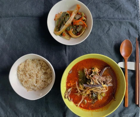 대파 소진 음식 2번인 육개장. 처음으로 끓여본 육개장인데 나름대로 나쁘지 않네. 고기랑 숙주랑 고사리랑 가득 넣고 바글바글 끓여서 땀 흘려가며 훌훌 먹었다. 집에서 끓인 육개장답게 간은 자극적이지 않고 슴슴하게.