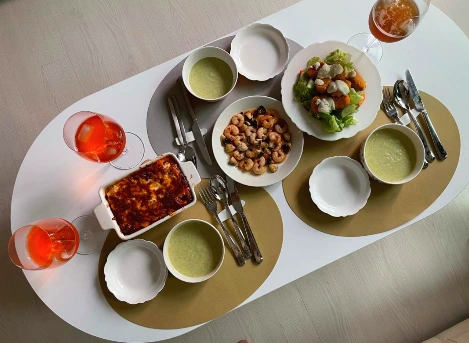 맘먹고 차려낸 손님상! 브로콜리 수프와 닭튀김 샐러드, 새우 버터구이와 라자냐를 냈다. 솔직히 요즘 제일 어려운 요리는 수프다. 뭔가 맛있으면서도 계속 완벽하지 않은 느낌. 강한 향신료나 식감의 도움 없이 오롯이 혼자 해내야 하는 요리라, 잘 안되었을 땐 그게 너무 크게 느껴진다 하핫.