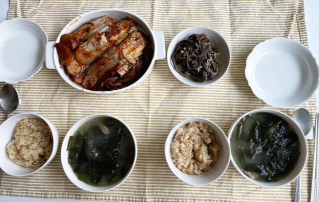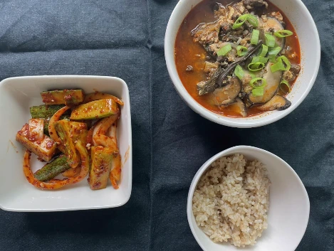 내가 사랑하는 오이 반찬, 오이 무침! 오이로 만든 반찬은 다 맛있고 상쾌하다 히히. 예전에 끓여서 얼려놓았던 육개장과 호로록 간단한 한 상.