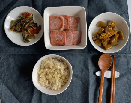 옥수수를 넣고 옥수수밥을 만들어봤다. 솥밥으로 만들었다면 더 맛있었겠지만 역시 솥밥은 아직 자신이 없다 흐흐. 그래도 밥으로 지으니 수분을 머금고 더 부드럽고 고소해졌다. 고추장아찌는 안내문에 쓰여있는 레시피를 이용해 조물조물 무쳐 먹었는데 새콤달콤한 것이 처음 먹어보는 반찬의 맛이었다. 꾸러미에서 오는 무침, 장아찌 류는 약간 달콤한 맛이 많이 나는 듯?