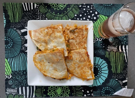 남은 옥수수 넣고 퀘사디아 구워 먹었다. 간단한 음식인 줄 알았는데 (실제로 간단하기도 하고 뭐) 파는 것처럼 생각보다 예쁘게 각이 잘 안 나온다. 퀘사디아를 덜 구워서 그랬을까? 지저분하게 먹게 되긴 하지만 그래도 재미난 특식. 기가 막힌 맥주 안주인데 평일 점심이라 티 에이드와 함께 먹었다 힝...