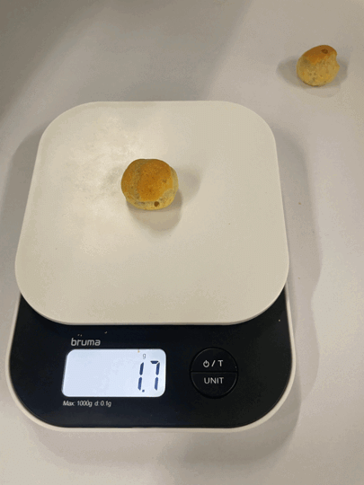 홈런볼 1알 측정결과, 마트 홈런볼은 1.4g 그리고 편의점 홈런볼은 1.5g이었습니다. 마트 홈런볼 보다 편의점 홈런볼이 0.1g 더 무거웠습니다.