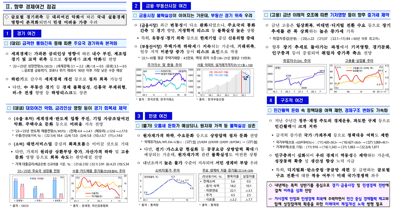 ◇ 글로벌 경기위축 등 대외여건 악화에 따른 국내 실물경제영향이 본격화되면서 민생 어려움 가중 우려