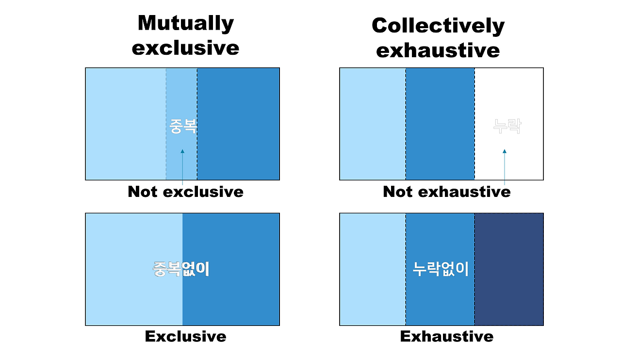그리고 마지막으로 중복과 누락 없이 - MECE에 대해 알아보겠습니다.
