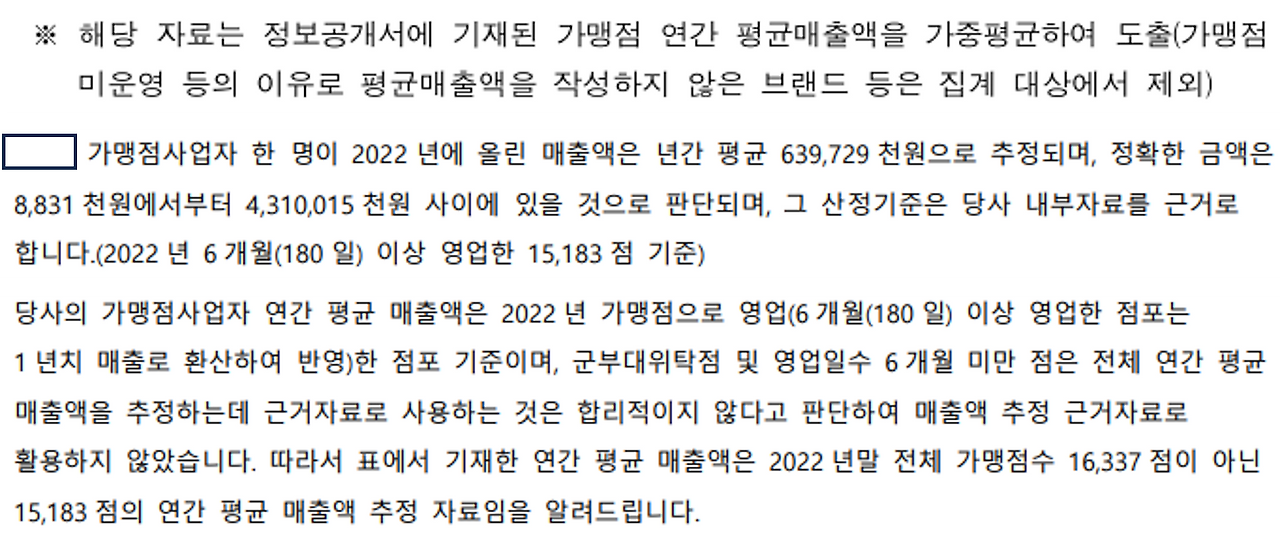 아래는 실제 정보공개서와 정부기관 보고서에서 나타난 데이터 정의와 한계점에 대한 부분입니다. 명확히 서술된 내용을 잘 살펴보는 것으로 평균 데이터에 대한 이해를 마무리 하고자 합니다.