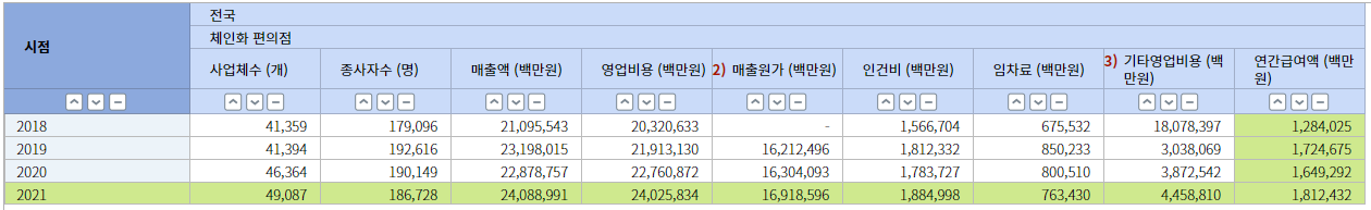 그렇다면 각 브랜드별 점포 수는 얼마나 많을까요? G 편의점의 점포수는 2022년 말 기준 16,377개 점포로, 2023년 전국에 약 17,000여 점포가 있다고 합니다.