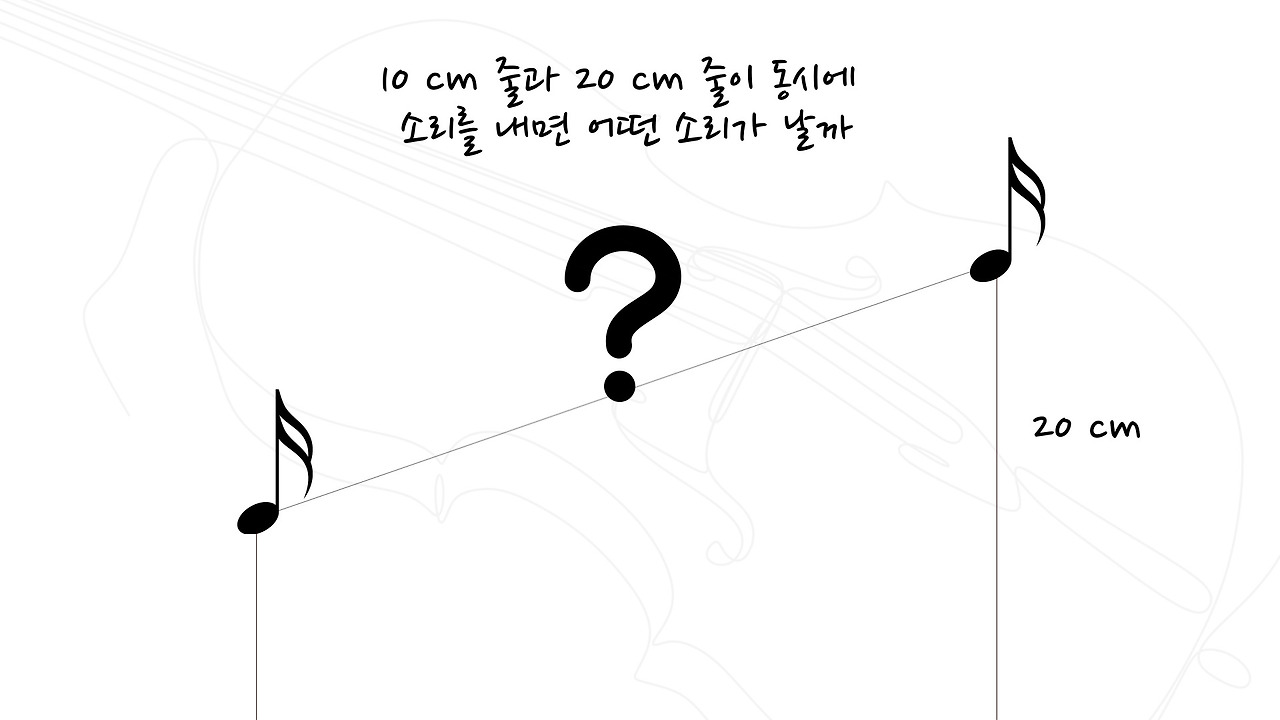 악기의 소리는 그들의 줄이 진동하는 속도에 따라 달라져요. 속도라는 것은 줄이 빨리 떨리냐, 천천히 떨리냐를 말해요. 줄의 길이가 관련이 있는데요. 줄이 길면 덜 떨리고, 줄이 짧으면 자주 떨립니다.