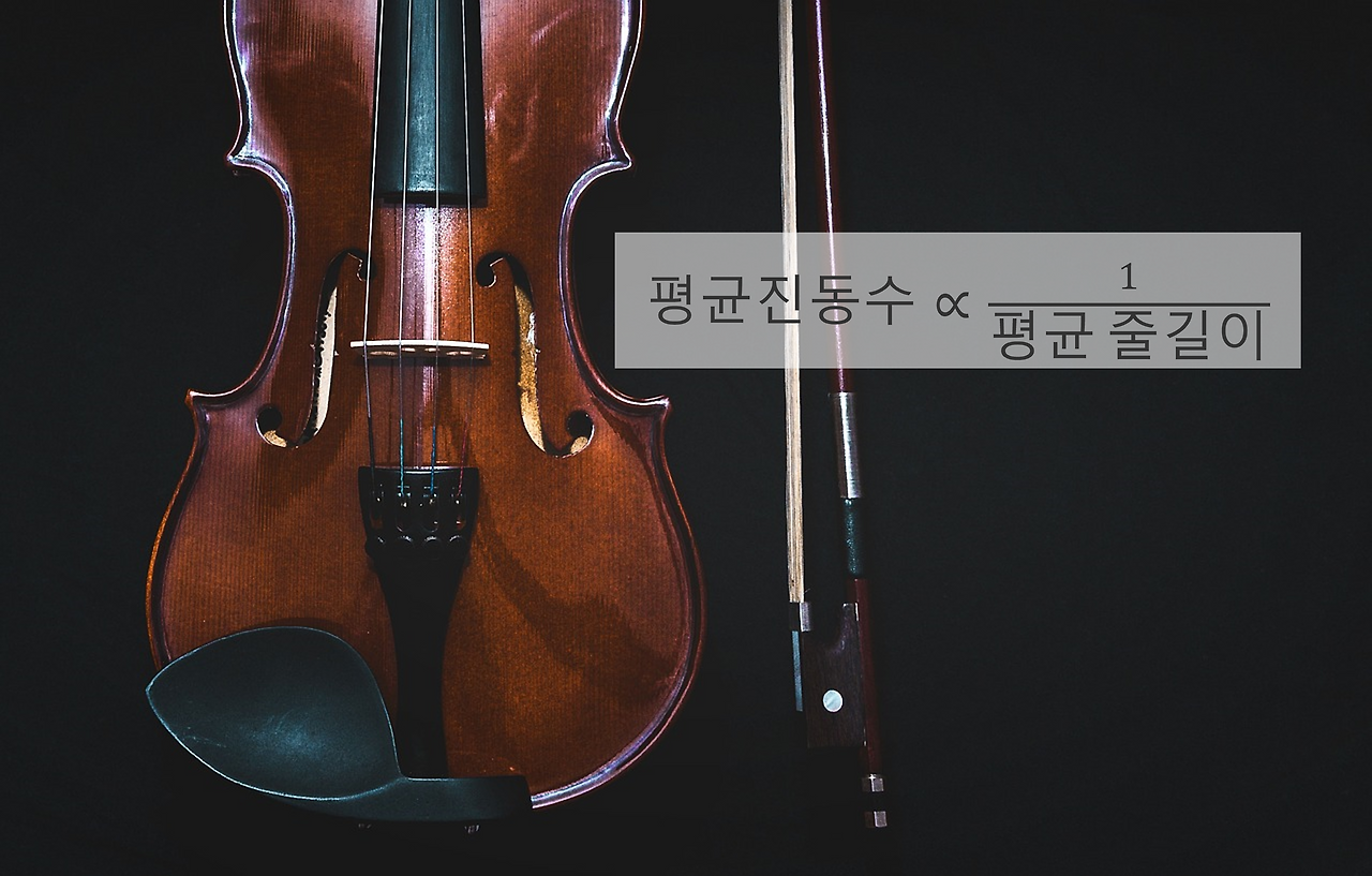 줄이 자주 떨리고 덜 자주 떨리는 것을 다른 말로는 '진동수'라고 하는데요. 이 진동수는 줄의 길이에 반비례합니다. 다시 말하면, 줄이 길수록 조금 떨리고, 줄이 짧을수록 많이 떨립니다.