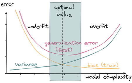 불행히도 분산도 작으면서, 편향도 작은 완벽한 모델은 찾기가 매우 힘듭니다. 왜냐하면 분산과 편향 사이에는 상호 배반관계(Trade off) 즉 한쪽이 작아지면 다른 한쪽이 커지는 관계가 있기 때문입니다. 따라서 우리는 이 둘을 절충해야 하죠.